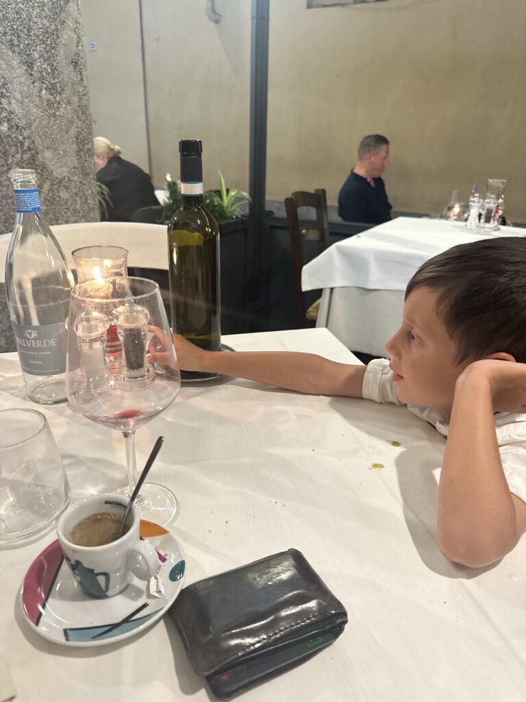 Dinner was a fixed menu—classic Italian fare, with an appetizer, starter, main course, and dessert—and it was delicious. Cedar couldn’t believe they kept bringing dish after dish. We were used to Swiss dinners (served at our usual dinner hour), which tend to be smaller due to the larger midday meal. So after a massive meal, it was off to bed with full stomachs and dreaming of what adventures the next day might bring.