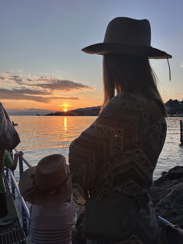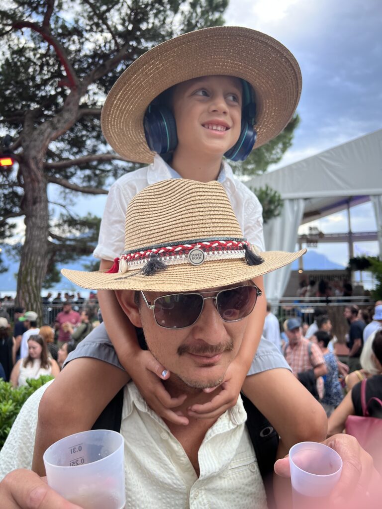 Later that afternoon, we decided as a family to brave the unsettled weather and head down to Montreux for the final night of the jazz festival. The sky couldn’t decide between rain, clouds, or sun, but we were determined to see the festival off in style. We ended up joining the party at the Super Bock tent, listening to incredible live music and capping off the evening with a spectacular sunset over the lake. Time feels like it’s speeding up now, and with only a couple of weeks left, we are all feeling that pull to squeeze in as much as possible. But this was one of those important moments that warranted a late night —after all, it’s not every day you can experience a world-class festival right in your own backyard.