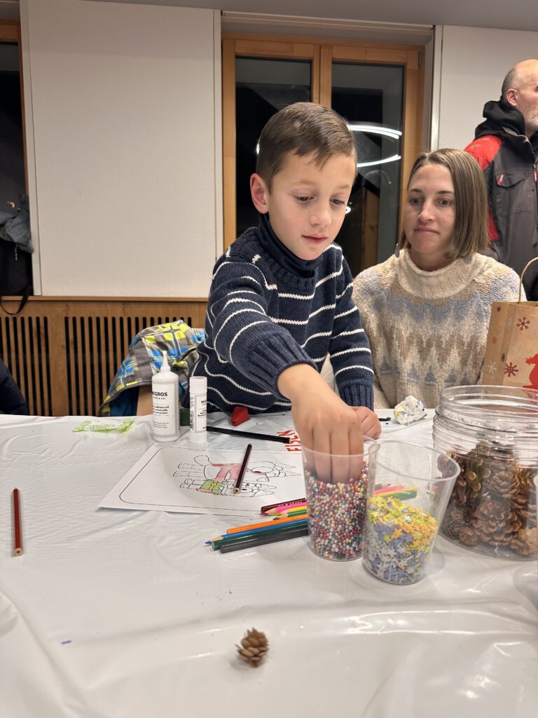 On Friday night, we wandered over to the Saas-Fee Christmas market where we sampled some steaming glühwein, and had Raclette for dinner while Cedar joined the village kids at the craft table, making homemade decorations and ornaments with lots of glitter and glue.