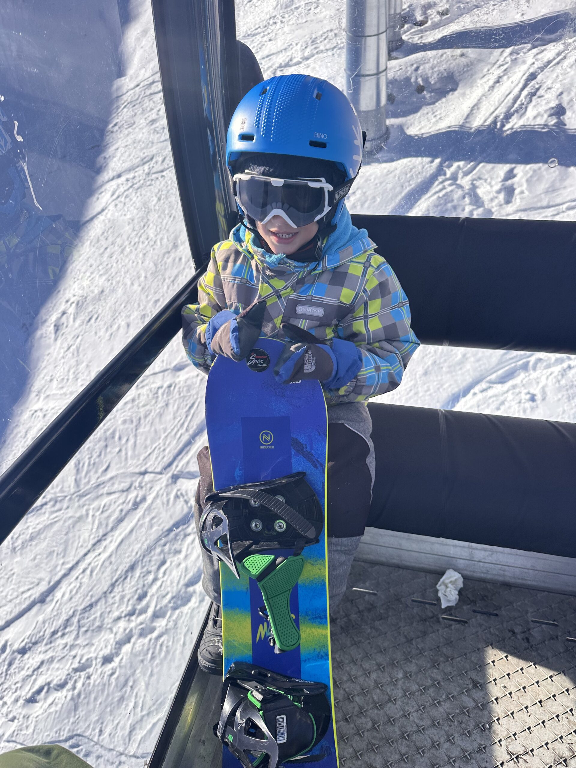 He’s been progressing like crazy. Loads of confidence. Even trying out some little jumps. He’s gone from barrelling straight down the slope full speed (usually aiming for something soft to stop him—most often me) to confidently riding heel side, carving both directions, and—most importantly—stopping in a controlled manner.