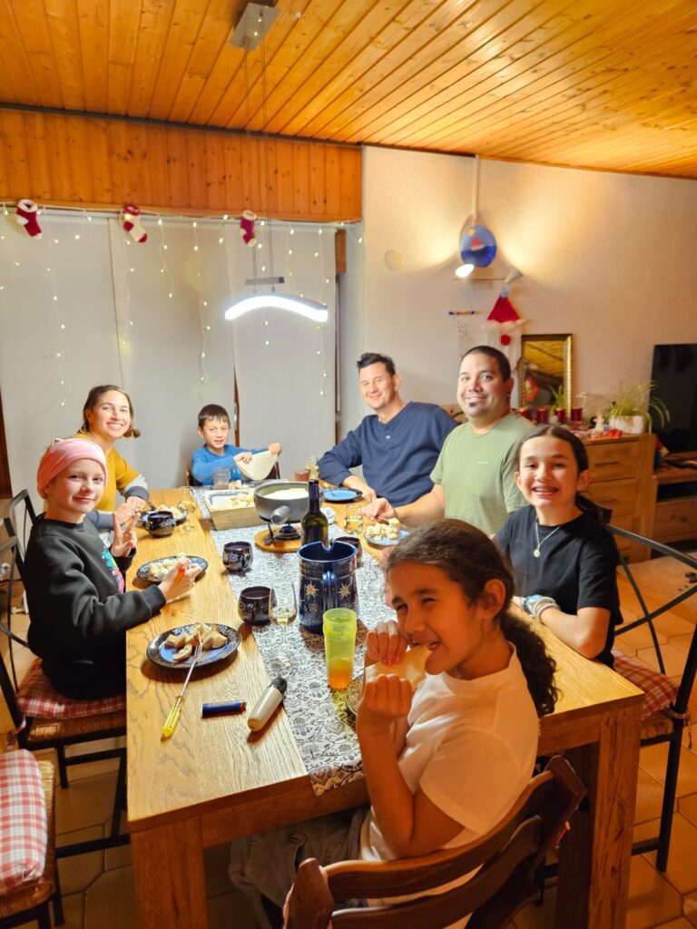 After dropping off our bags and making a quick trip down to Denner for groceries, we joined the Chevalleys for a lovely fondue welcome dinner. All the travel we’ve been doing has completely warped my sense of time. In some ways, it doesn’t feel like we ever left. In others, it feels like we’ve been away for a long time. I now gauge the passage of time based on construction progress in the village, honestly, I was expecting more progress—it looked like only one more floor of concrete had been poured since the summer, but no one was complaining, as it meant our spectacular balcony view was preserved!