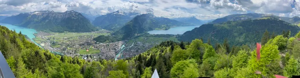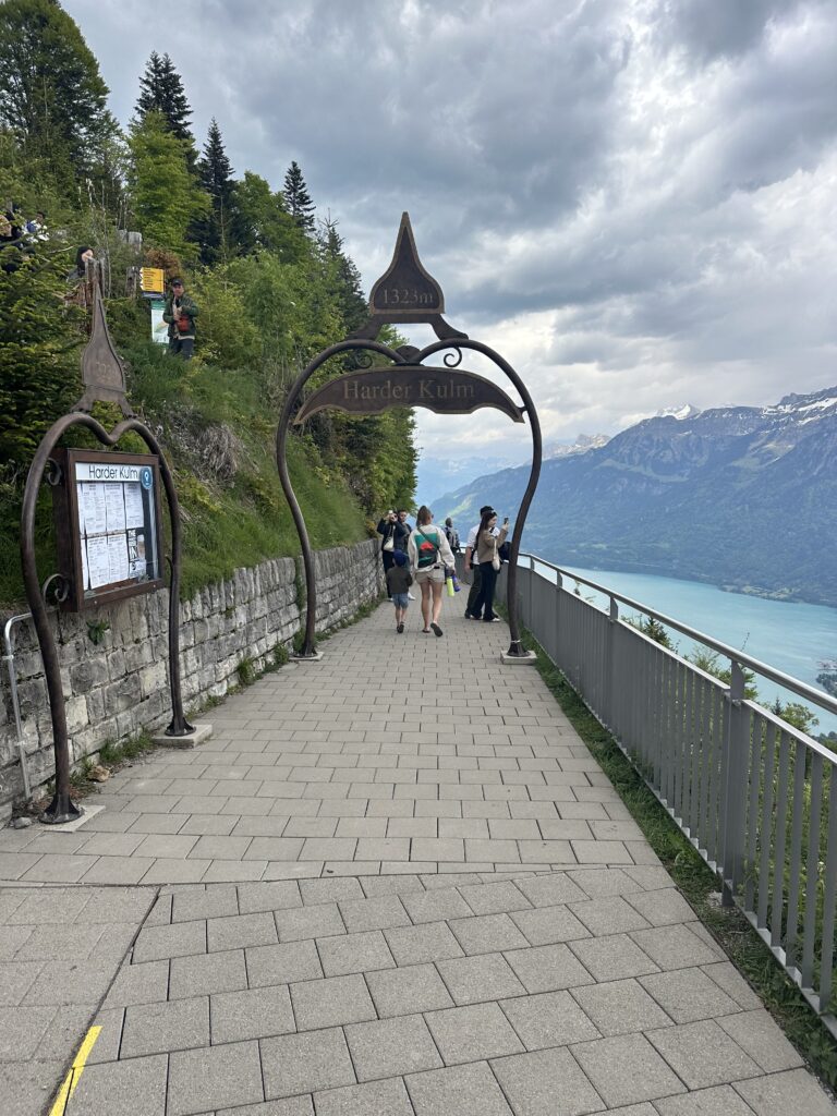 After an exhausting hike (to the funicular station), we made it to the top of Harder Kulm—and were rewarded with absolutely breathtaking views of Interlaken, Lake Thun, Lake Brienz, and the snowcapped trio of Eiger, Mönch, and Jungfrau (aka the Ogre, the Monk, and the Maiden).