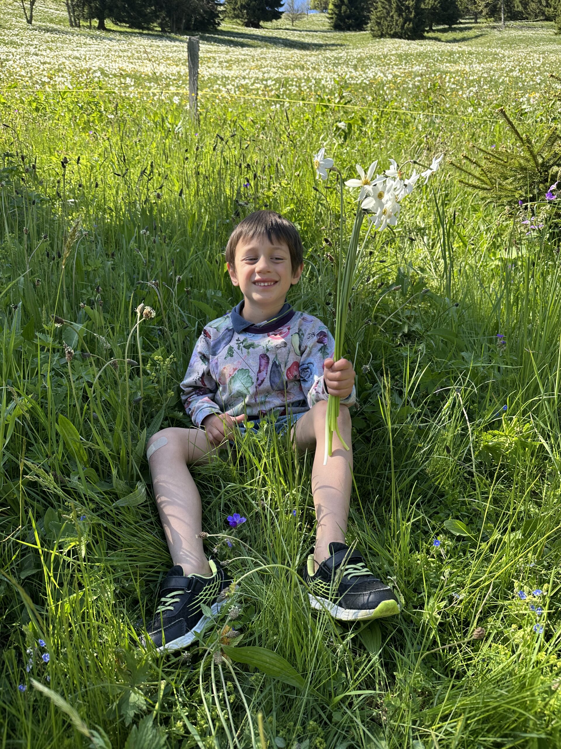 This Sunday, we were lucky to be invited up to Yvan’s parents’ chalet, which sits right in the middle of the picturesque alpine slopes dotted with flowering narcissi. We even got to help the girls pick and wrap bouquets they sell to tourists—such a fun way to take part in the tradition.