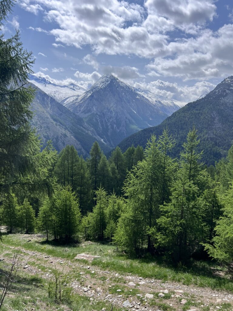 I think of him every time I’m back here, surrounded by the peaks of the Saas Valley. And I’m thinking of him now, as we return—this time with Cedar for his first time, and with Dave and Biba, who’ve been here once before.