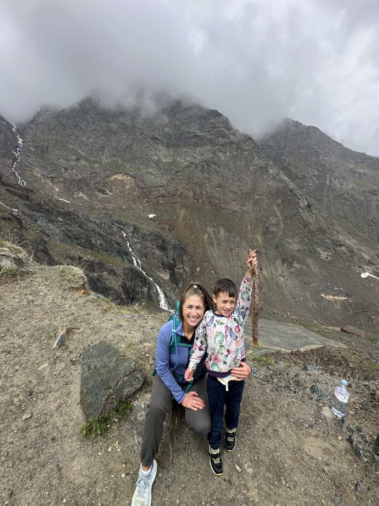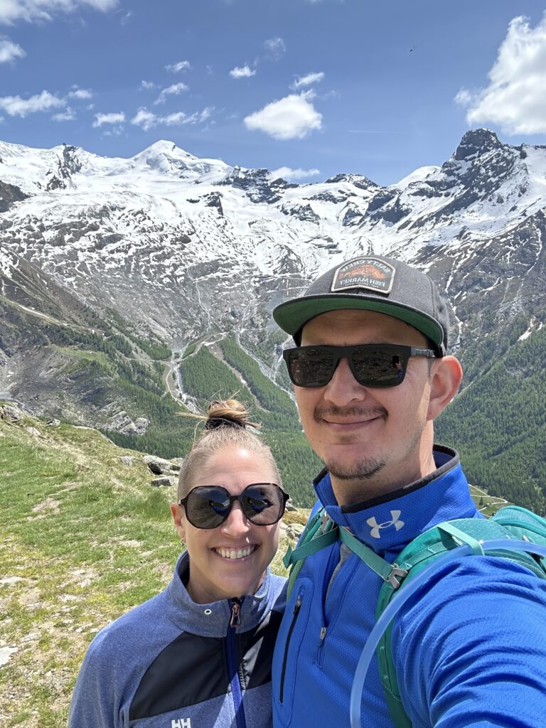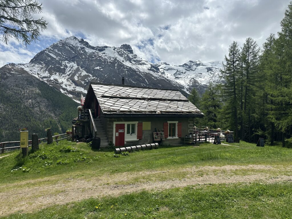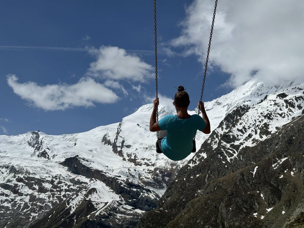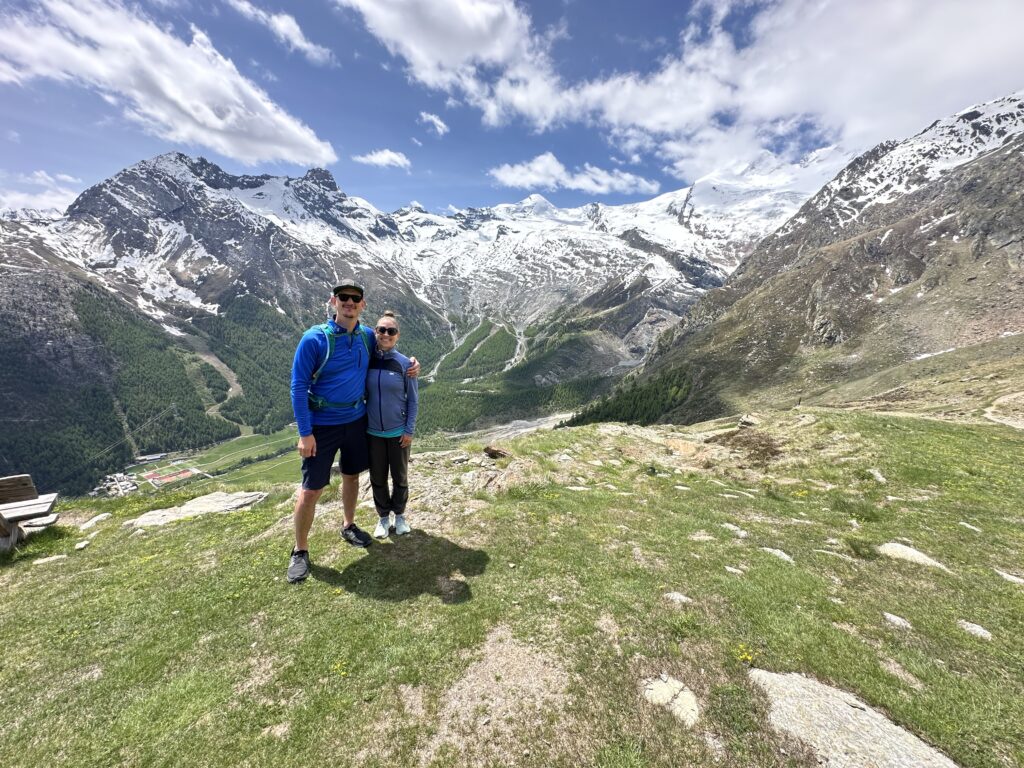 At the top, we found only one other tourist—a friendly Swiss guy acclimatizing for a bigger climb. We shared our now-traditional “hiking-sized” bottle of rosé and soaked in the views. When the clouds lift in Saas Fee, words really fail. The scale of the mountains, and your own smallness in comparison—it’s something else.